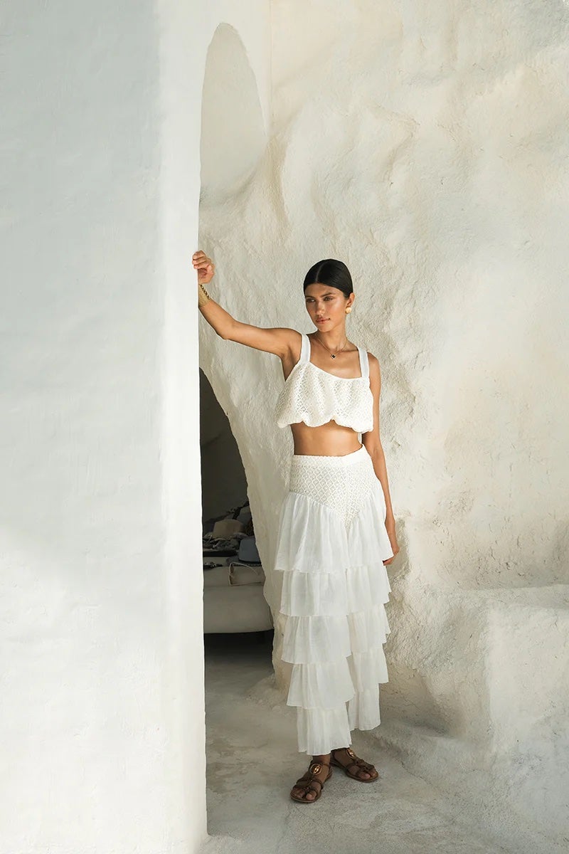 Designers embraced ruffle detailing on the spring/summer runways with a nod to this season’s hyper-feminine trend. From OpéraSport’s blouses and handbags to Alectra Rothschild’s skirts, ruffles adorned plenty of looks. If a full ruffle outfit à la Lovechild 1979’s grey midi dresses and matching sets isn't for you, consider pieces that use the decorative element as an accent.