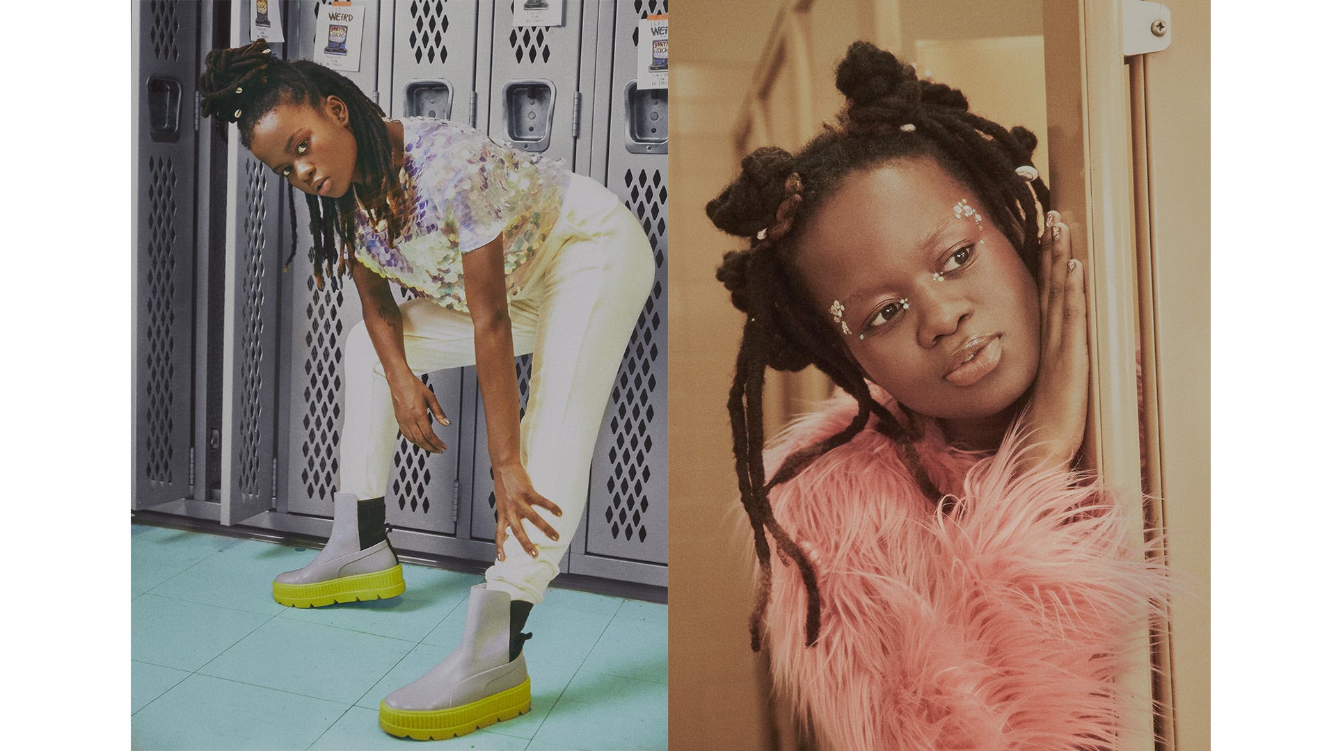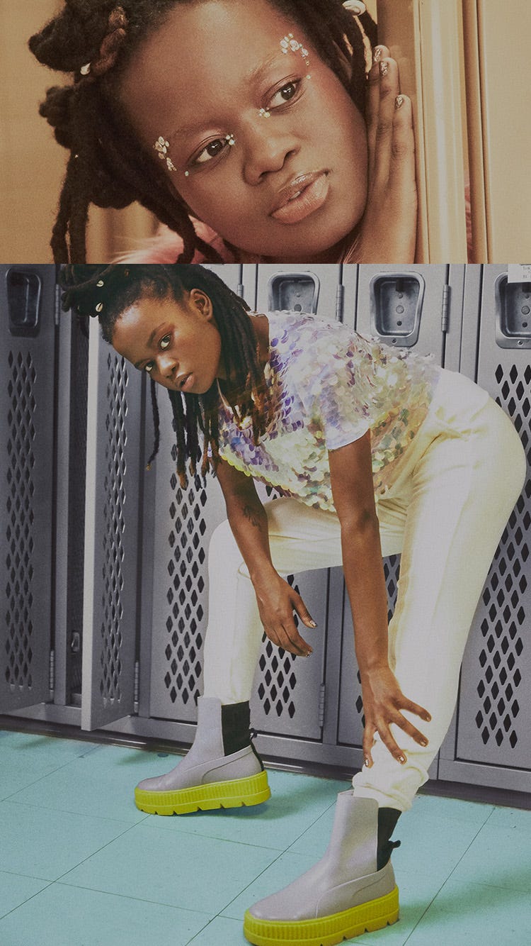 So what’s their secret to getting this ever-elusive formula just right? To show us how it’s done, we tapped Sabrina Fuentes, Ella Moore, and Eva Kaufman — the trio behind NYC-based band Pretty Sick — who turned to PUMA Fenty by Rihanna’s latest collection (think: varsity-inspired knits, velour track pants, and platform boots) to create party-ready looks that are as relaxed and cool as they are. Watch the video above to see how they pull together their killer on-stage ensembles, and then scroll down to get the scoop on every last detail.
