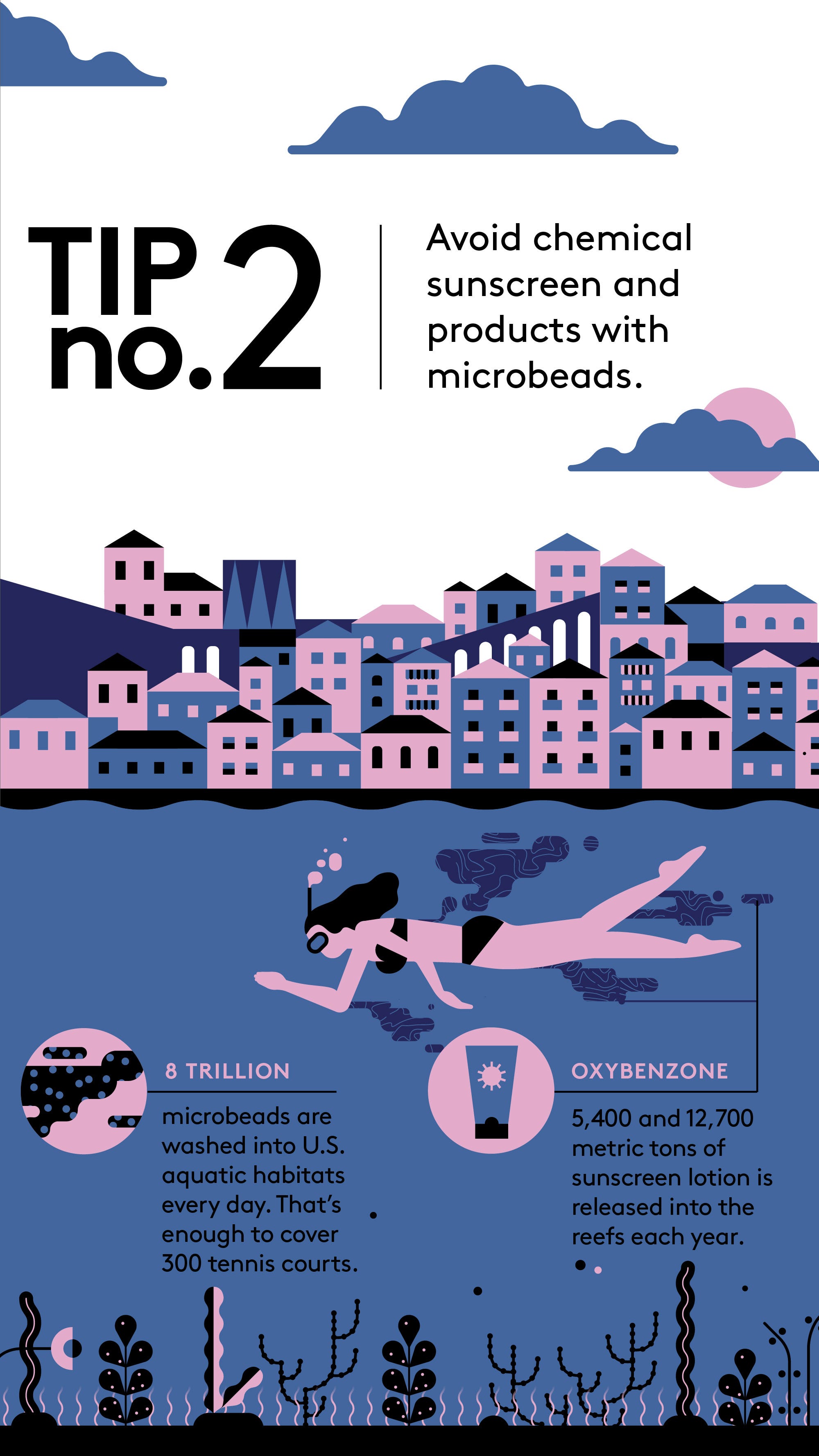 Sources: Archives of Environmental Contamination and Toxicology, Toxicopathological Effects of the Sunscreen UV Filter, Oxybenzone (Benzophenone-3), on Coral Planulae and Cultured Primary Cells and Its Environmental Contamination in Hawaii and the U.S. Virgin Islands, October 2015. Environmental Science & Technology, Scientific Evidence Supports a Ban on Microbeads, October 2015.