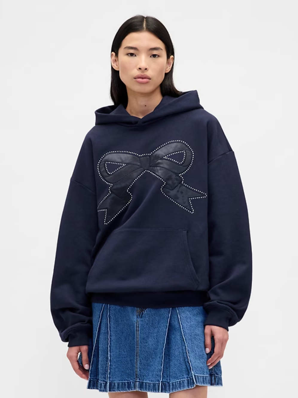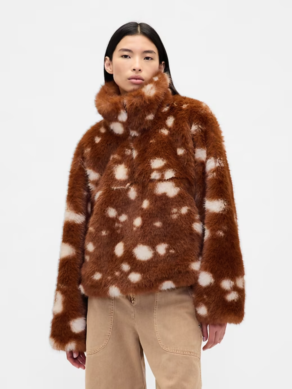 Known for her feminine aesthetic via pastels, ruffles, and bows, Liang is bringing her style to Gap via a trench coat with an oversized bow, a Mary Jane ballet flat-printed sweater, and a denim baseball cap with “star” written in Gap’s logo font. You’ll also find Gap essentials, like hoodies and low-rise jeans with the Liang treatment (AKA bow stitching, vegan fur, and the designer’s first name). And don’t forget about the children (not just your inner child) — there will be online-exclusive baby and toddler styles, like a onesie, sweatsuit, and spotted fur jacket (which matches the womenswear style lower down).