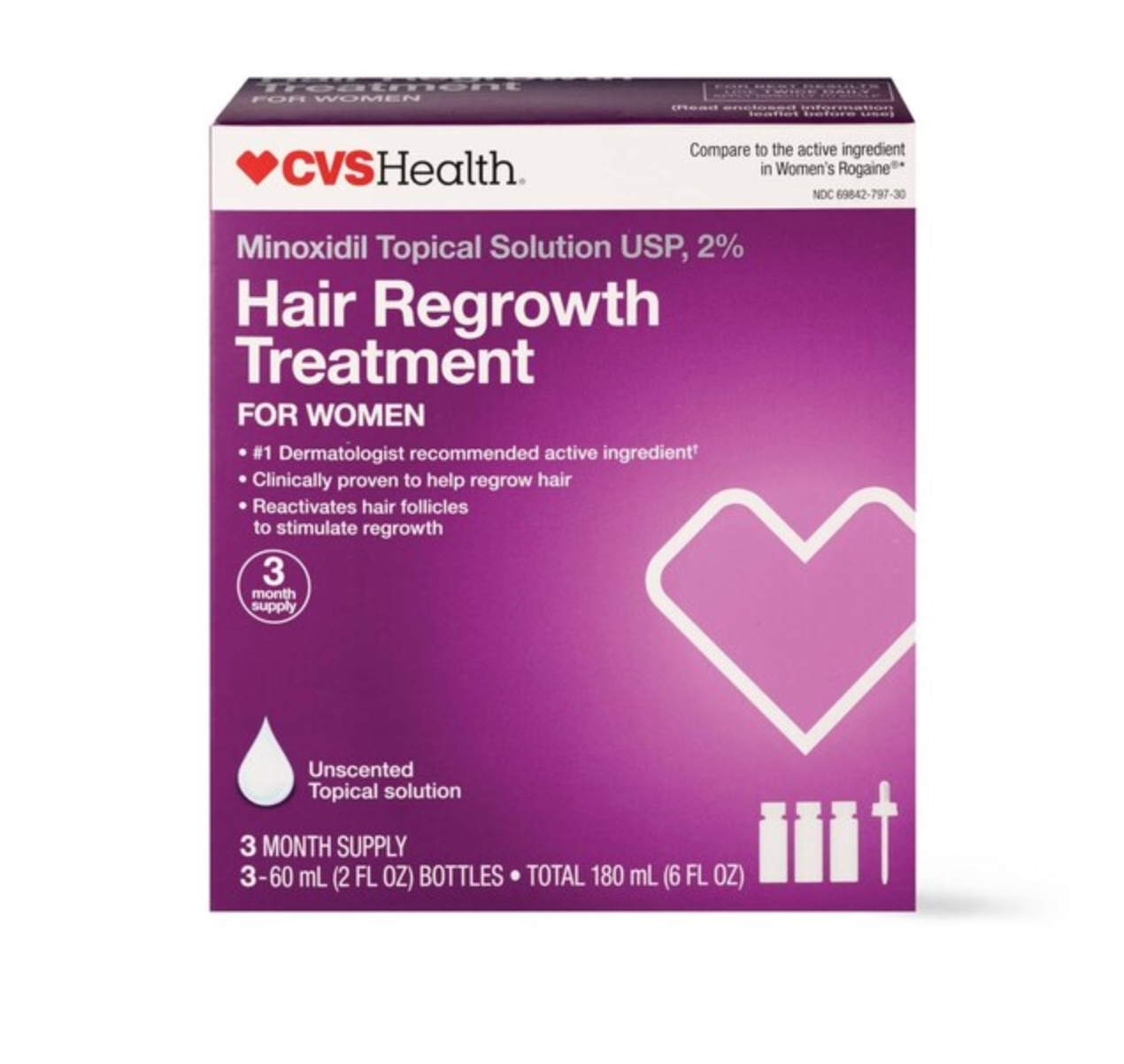 Angela adds that lots of people who are dealing with hair loss need more oxygen to the affected areas to stimulate hair growth. She says that minoxidil is used to spot-treat areas of baldness or a receding hairline, since it stimulates those areas and slows down further balding. It's the active ingredient in the popular over-the-counter product Rogaine.