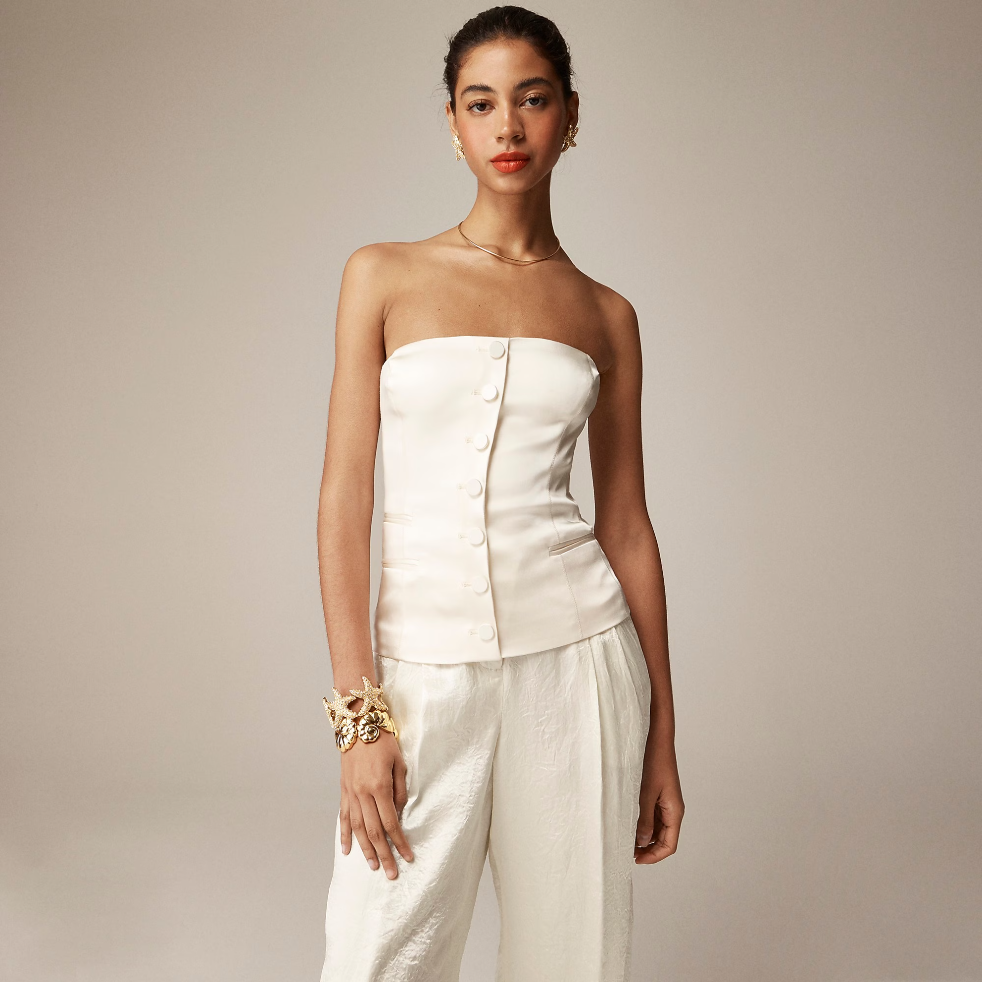 “Anna is such a joy to work with and always has the most beautiful concepts and vision. She came to us with the idea for a summer garden party with a gorgeous color story using super soft pastels and shimmering fabrics for the second collaboration,” Olympia Gayot, J.Crew's creative director and head of womenswear design, said in an email. “It perfectly embodies both Anna October and J.Crew. We see it living all over the world from a European beach to a wedding to the city streets.”