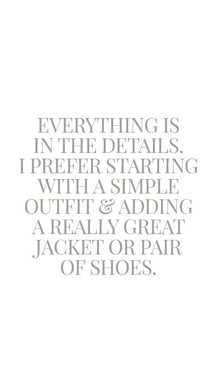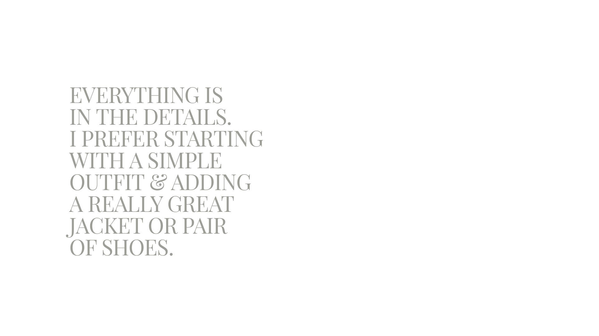 "I love classic pieces with a bit of an edge — more masculine in that sense. I don’t like anything overly girly, but I do like a nice silhouette and structure. When it comes to outfits, everything is in the details. I prefer starting with a simple outfit and adding a really great jacket or pair of shoes to take it to the next level."
