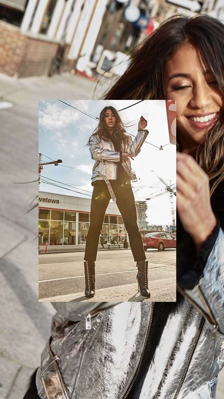 "I would never get rid of my jackets, from leather jackets to duster coats. I rotate them constantly and consider them investment pieces. I’m wearing a blazer with pretty much everything these days — casual for daytime and dressed up at night. Oversized blazers are my go-to, as well as biker jackets. Paired with flats or heels, they look great. In Canada, a good winter jacket is also key. Oversized coats are great because you can pile a ton of layers underneath and not look frumpy."