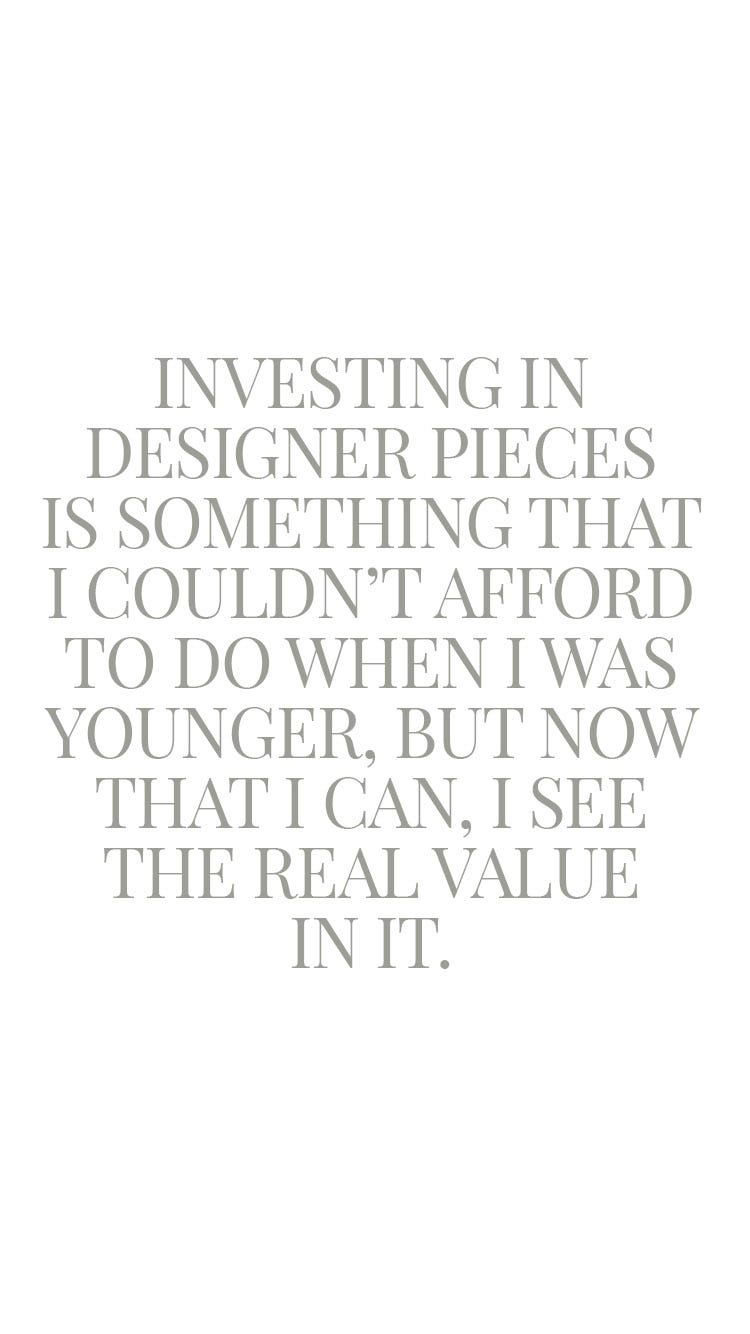 "Investing in designer pieces is something that I couldn’t afford to do when I was younger, but now that I can, I see the real value in it. It's all about mixing the highs and lows."