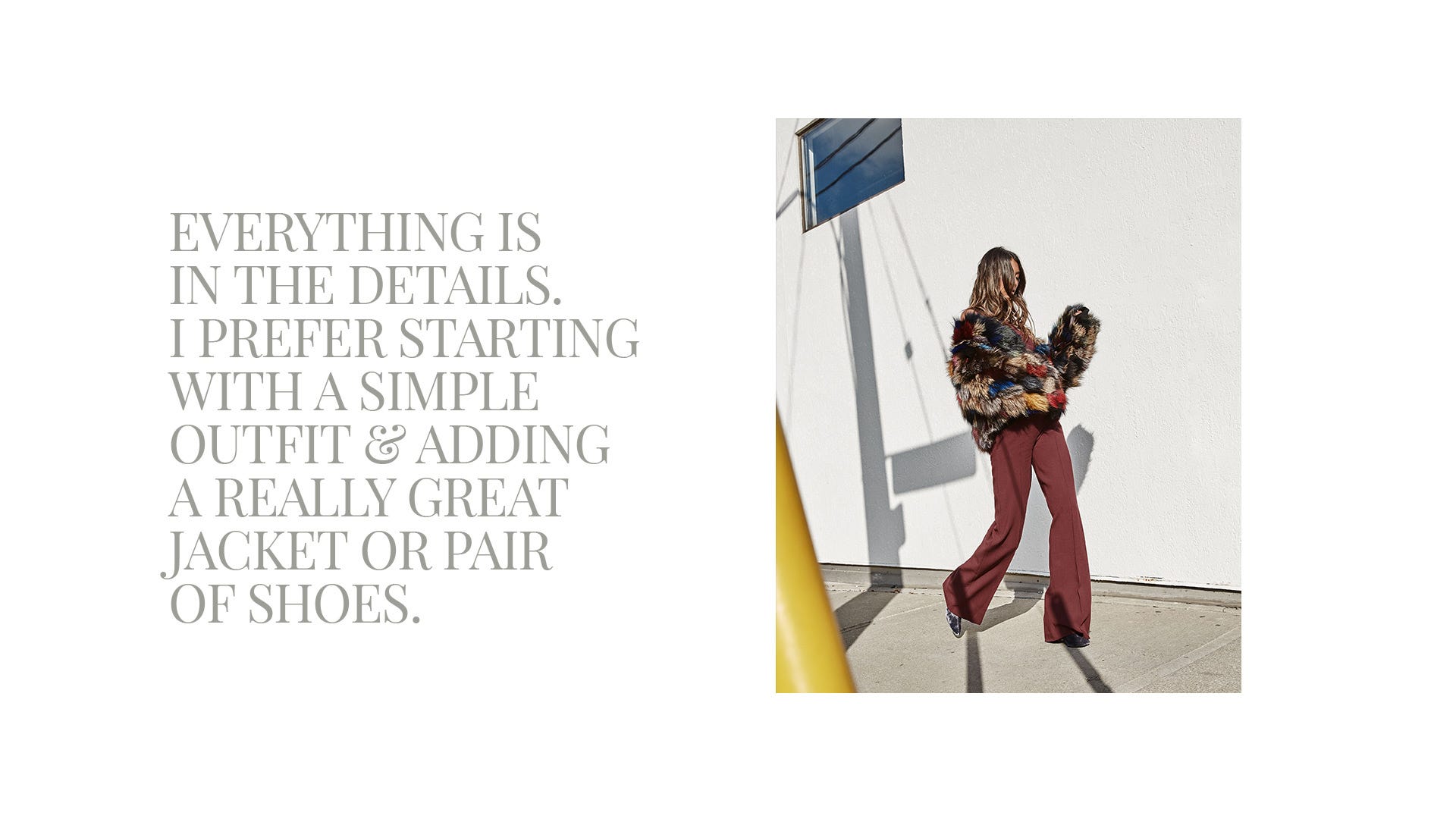 "When I was young, I worked in a lot of retail stores and remember being very bored because I wanted to do something much bigger with clothing. I've been obsessed with putting my own outfits together since I was very little. My experience assisting stylists made me realize that I really liked the online world and wanted to go in that direction. I also worked at several boutiques, so I got exposure to visual merchandising, and I started picking up Instagram. I always thought that I’d be a stylist, so I figured that the blog was a way I could style but not have to be on set doing shoots all day. It was about making it my own thing. I realized I could monetize it and turn it into a full-time job."