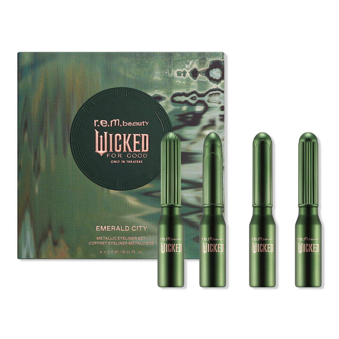 If you, like me, have been voraciously consuming every morsel of For Good content as the November premiere date approaches, prepare yourselves; r.e.m. Beauty x Wicked: For Good is the ultimate beauty collection for you to obsessulate over. The limited-edition capsule features nine products, spanning blush trios, plumping lip glosses, metallic eyeliners inspired by the Emerald City, and a very special 12-pan eyeshadow palette inspired by the Ozian Forest — a locale that's featured prominently in the sequel. Also noteworthy: Two makeup sets inspired by For Good's leading ladies, Glinda and Elphaba, with four full-size products each.