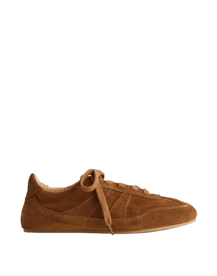 “We're seeing a lot of suede sneakers in neutral and warm colors like tan, brown, blue, and burgundy,” says Cohn. “These are easy, everyday styles that feel really elevated.” And when styling these suede shoes, Cohn says it’s best to embrace their preppy nature by “mixing these with classic separates like denim, blazers, tees, and layered jewelry.”