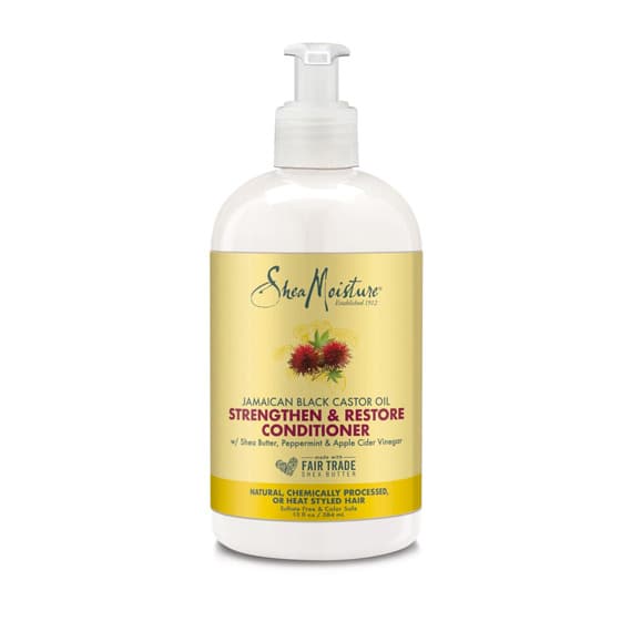 Try using the gentle, sulfate-free SheaMoisture Jamaican Black Castor Oil Strengthen & Restore Shampoo and Conditioner, which work wonders for any woman with heat-damaged and chemically processed hair as well as women with naturally kinky, curly hair, from 3A to 4C. The nutrient-rich formula helps reduce the appearance of breakage and stimulates healthy growth, thanks to the Jamaican Black Castor Oil loaded with reparative omegas. Organic shea butter intensely moisturizes strands and peppermint oil invigorates the scalp with a tingly sensation you're sure to be obsessed with.