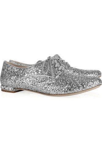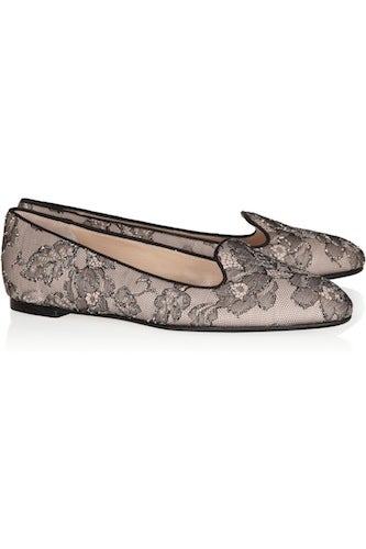 From sparkle-coated slippers and velvety loafers to romantic lace stunners and high-shine show-stoppers, our roundup is flat-out glamorous. Peruse through our selection of glitzy heel-less beauts after the jump and kick blister-making shoes to the curb.