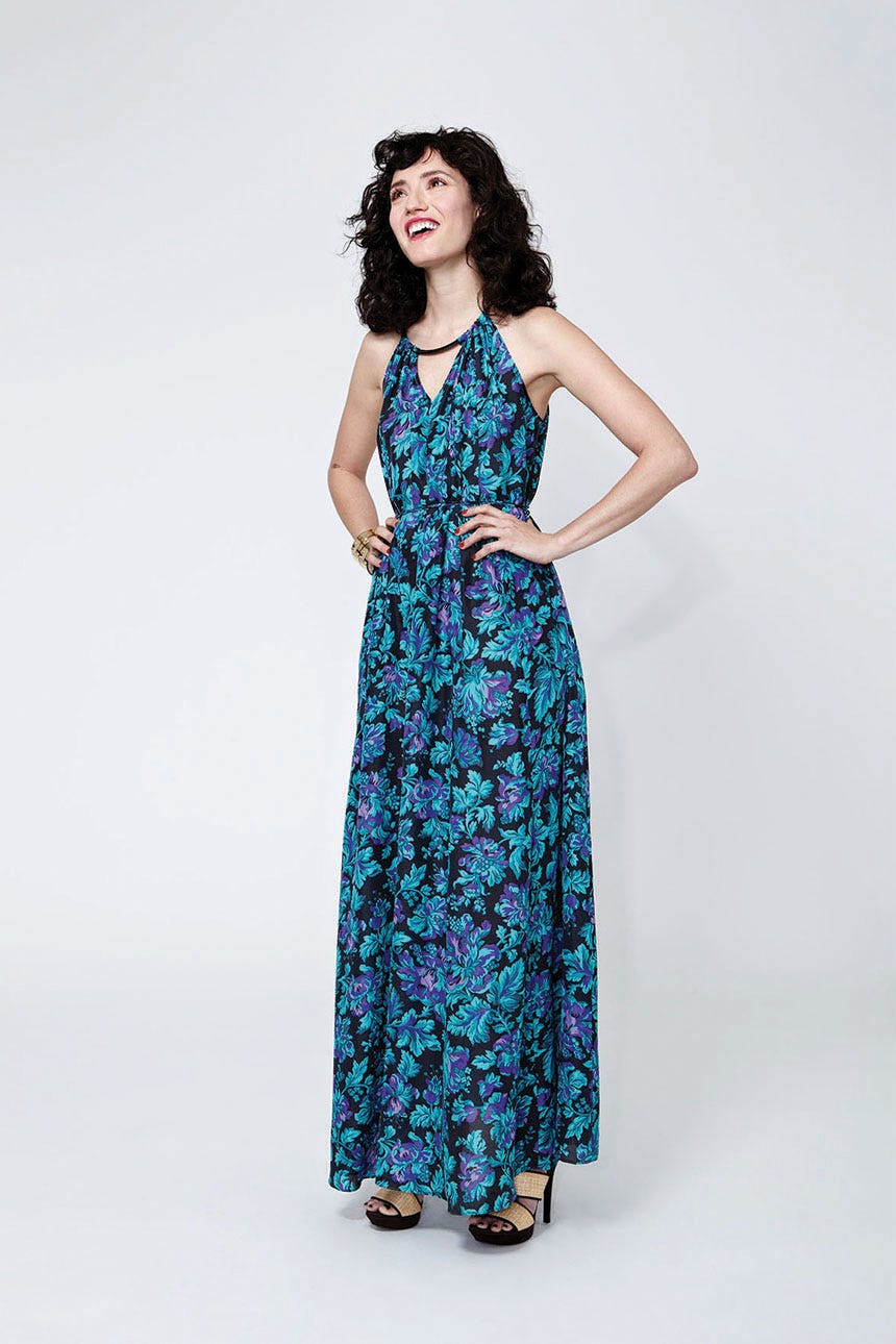 Zimmermann Printed Halter Dress; Fendi Shoes ; BCBGMAXAZRIA Black and Gold Cuff.
