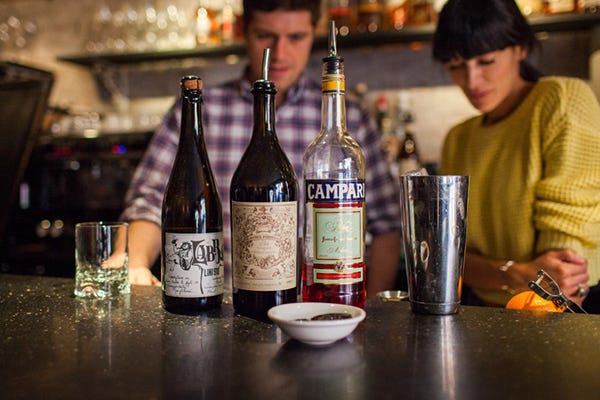 Bartending is what got me through my first few years of living in Manhattan. Now, almost 18 years later, here I am behind the bar yet again at Dell’Anima. I love the nostalgia of it all, my life has changed so drastically since those early NYC days when I lived at the Breslin in a 350-square-foot apartment. (Yes, my first apartment has been converted to the much chicer Ace Hotel.) Anyway, I didn’t cook then, knew nothing about great food and wine, and I certainly wasn’t making Negroni’s behind the bar at the Tunnel & Palladium!