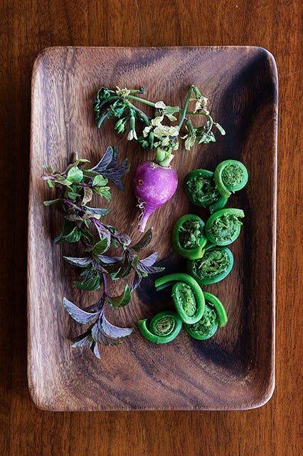 Danny and I created a salad of octopus and fresh summer veggies over crunchy bread, all made on “The Plancha” (really a fancy word for a super hot griddle, heehee). I will admit I had no idea what that meant when he shared the dish with me, but that that’s exactly how I like it. I want to learn and expand my understanding and techniques in the food space — and this day, I got to do just that, in the kitchen & garden with a chef I have the utmost respect and regard for —so, lets get cookin’!