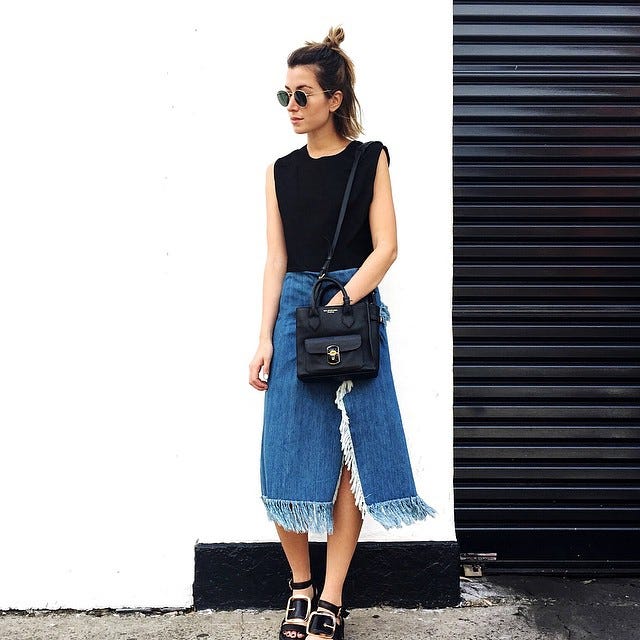 Carmen Hamilton of @chroniclesofher_ cashes in those fringe benefits with her wraparound skirt. We're inspired to upgrade our denim for the hundredth time this spring.