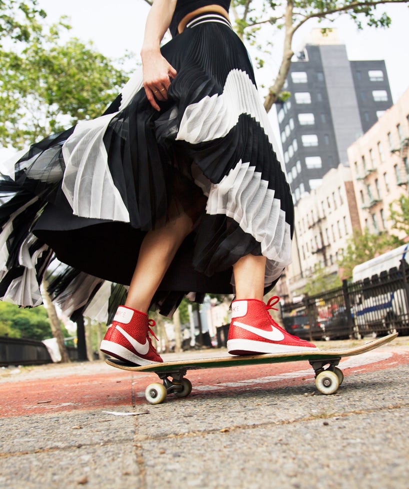 Margaret Zhang (@margaret_zhang) looks back at summer and steps forward into fall in a midi skirt and a Celeste Tesoriero top. You do you, boo.
