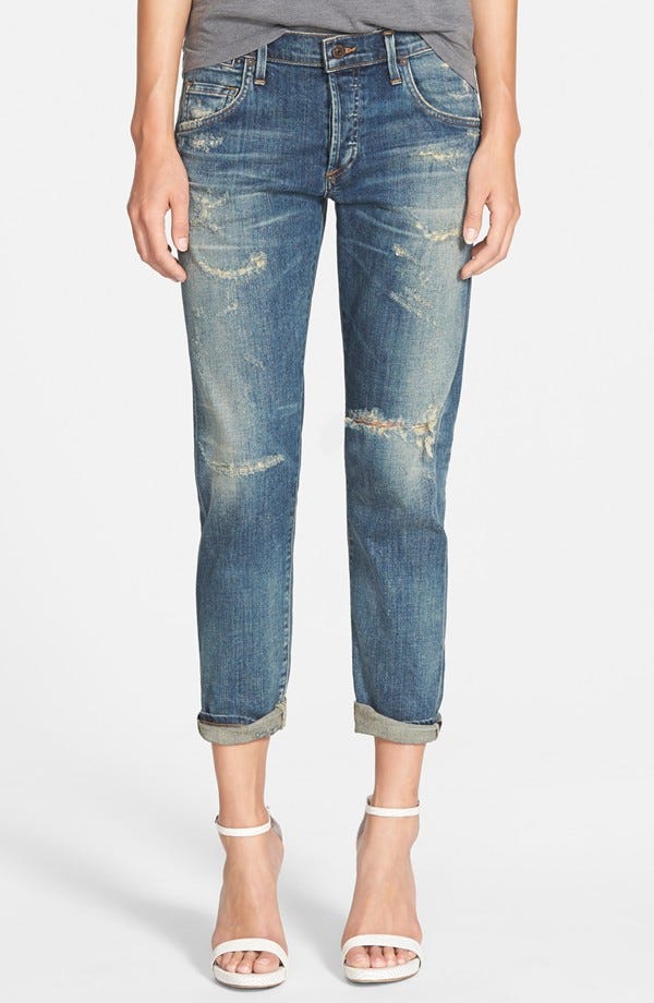 Exhibit A of how to wear distressed denim— do it like Margaret Zhang (@margaret_zhang) does it with a belted jacket and boots. Bonus points for fierce sunnies and a popped hip.