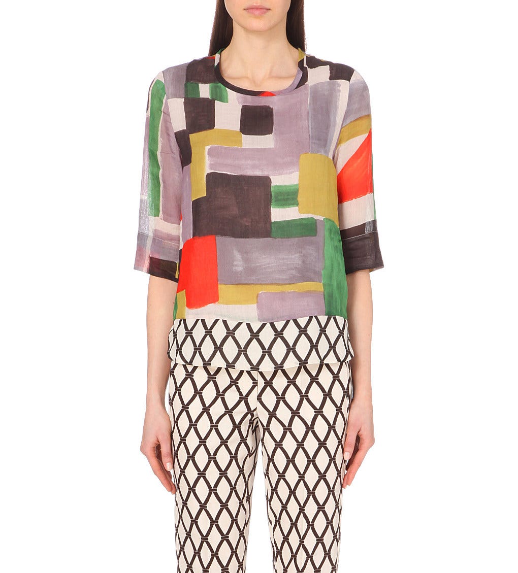 Dasha Gold of @thetrendspotter lends different strokes to the matchy-matchy look: The blogger pairs an arty, long-sleeved top with corresponding trousers, both Max Mara.
