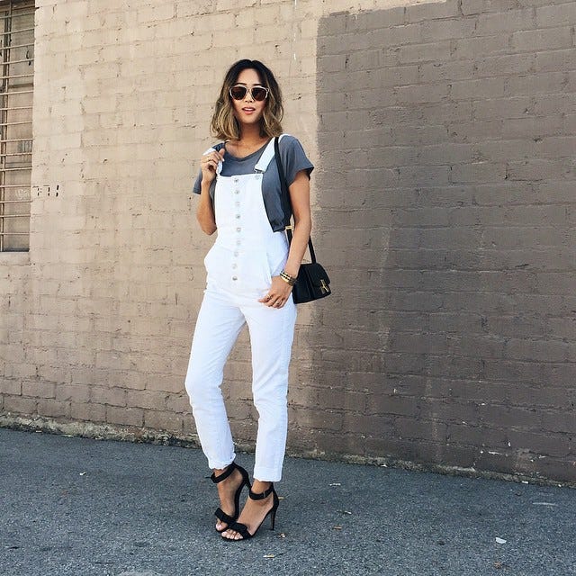 Nothing says "weekend" like your favorite lazy-day overalls. Aimee Song (@songofstyle)'s white-hot pair is just as suited for a Friday night out as it is for Saturday brunch with pals.