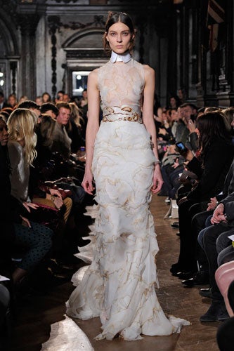 Everyone throws in their two cents when it comes to dresses at award ceremonies and red carpet events, but this is the motha-you-know-what-in' Met Gala — arguably the most sartorially savvy party of the year — and the fashion press will buzzing on a whole 'nother level. To bide our time before the paparazzi photos, we decided to beat celebs to the potential outfit punch. Enter our list of 10 designer dresses worthy of the night and 10 familiar faces we hope will wear them. Of course we're not trying to change anyone's style here (we totally embrace the Fanning's girly flair, Emma Stone's glamourous side, and Tina Fey's subtle-yet-classy look), we just wanted to play stylist and okay, maybe push the boundaries a little. If nothing else, we can see ourselves in all our fave frocks from fall and spring's hottest runway shows...should the occasion and the price tag allow. In the meantime, we'll dole them out to the stars to refresh their go-to (albeit equally divine) old faithfuls — Tilda, darling, we're lookin' at you.