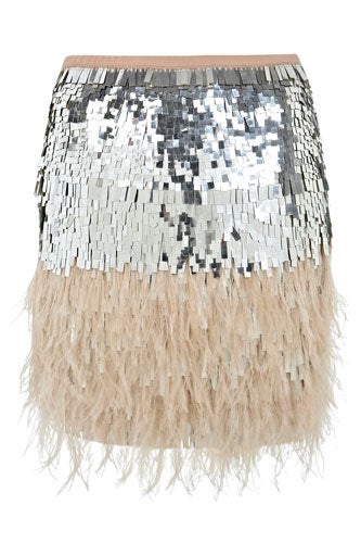 Feathered skirts might not be an everyday sort of item, but you'll be thankful that you have it in your arsenal once the holiday-party circuit starts. Seriously, just try to avert your eyes from all the gorgeousness happening here. Not every party piece has that kind of gravity.