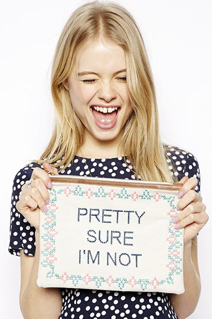 Talk to the hand? Forget about it. Now it's time to talk to the bag. Yep, the statement carryall is making a literal statement, and we’re all over it. Ahead, we’re sharing the best purses that really say something. From funny phrases ("I am broke but I am happy") to subtle sayings ("Love"), there's truly a slogan here to suit any personality. This season, talking big is in — er, on — the bag.