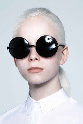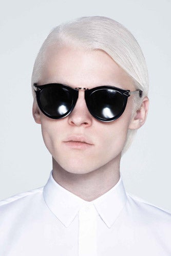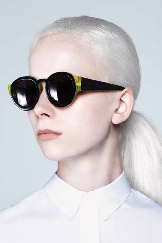 With so much retro on the runway, it's refreshing to take a trip to the other side of the event horizon. Our favorite designer down under, Karen Walker, delivers with an ultra-futuristic collection of sunnies that's got us stomping on the cat eyes and aviators of seasons past. The color-blocked plastic frames are worthy of David Bowie in The Man Who Fell To Earth (not the first time Ziggy Stardust has proven to be way ahead of his time), and the lucite pairs are so bright you'll need an extra pair of shades just to look at them. While they look great on the white-haired, crisp-collared near-extraterrestrials in the lookbook, there's no doubt these far-flung spectacles will be a close encounter with the awesome kind, now and in decades to come.