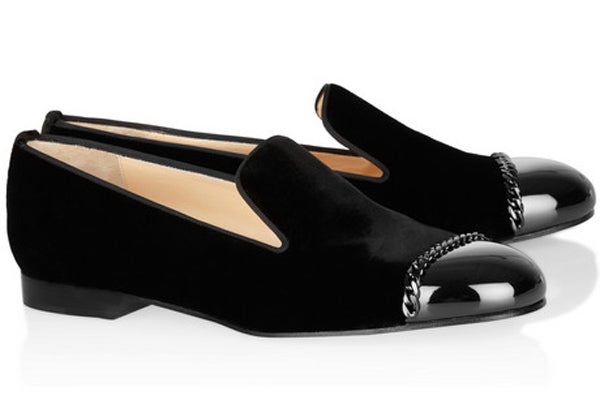 Watch out Hugh Hefner, Palm Beach doyennes, and cigar-smoking British lords—we've got our eye on your footwear. That's right, the smoking slipper is officially the hot new shoe of the season. Indeed, we've spotted 'em against the red-lacquered walls of Christian Louboutin boutiques, on the Alexander McQueen runway, and snuggling the toes of front-row fixtures like Lauren Santo Domingo, Giovanna Battaglia, and Leandra Medine this past Fashion Week. These slip-ons pack a bigger style punch than other heelless options, and given their structure and plush material, their comfort one-ups the competition, too. Equal parts leisure and luxury, this perfect fall flat can be classic, quirky, or edgy—and we've curated a list of the best options to get you in on the trend. Studded bad-boys, cheeky velvet cats, or woven zig-zags...whatever you're feeling, the trek from your bed to your office just got a whole lot easier.