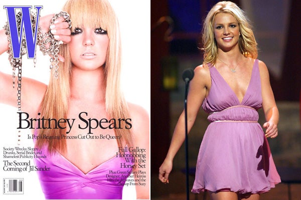 Ever since she and her pigtails first shimmied across our collective consciousness 13 or so years ago (yes, it's been that long), it's been evident that there are at least two photographic Britney Spearses—the glammed-up extraterrestrial attitude queen created by stylists for magazine covers and the sometimes sloppy, rarely predictable girl seen at awards ceremonies and convenience stores. For every controlled cover of Bazaar, V, or Vogue, there's a paparazzi snap of BritBrit looking like a Florida State sophomore on her way to class. We're kinda pumped for her highly anticipated return to television on "Good Morning America" tomorrow (albeit filmed two days in advance in San Francisco), so in her honor we've gathered a small portion of her photographic history and asked you to tell us, which Spears does it better—the live version or the print edition?