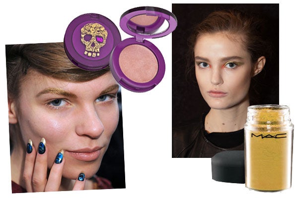 Call us gold diggers, but we noticed a gold hair, makeup, and nail trend coursing its way through Fashion Weekâand it didn't disappoint. It's no secret that some looks, like the gold-leafed hair at Jason Wu or the unexpected golden brows at Jen Kao, make a serious statement, but dialed-down versions of last week's gold-flecked beauty can be just as effective and a welcome alternative to the earth tone trend that pops up every spring. Plus, gold eyeshadow or cheek accents truly does flatter every skin tone. Ready to trade up? Here are three ways to go for the gold.