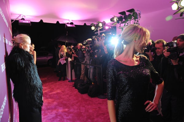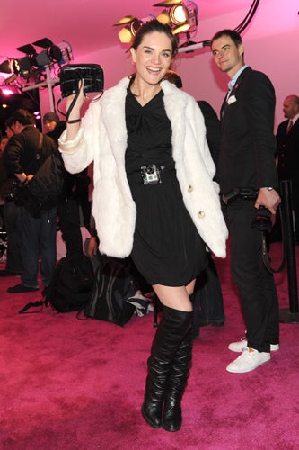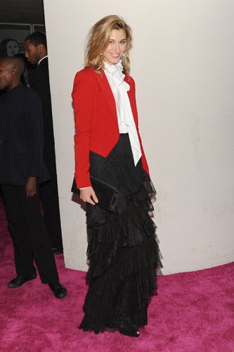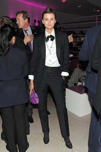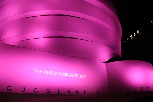 Yesterday, New York's finest pulled out their fancy wares to attend the Hugo Boss Prize 2010 at the Guggenheim museum, an award-ceremony-cum-monster-party that recognizes a single contemporary artist who "created truly inventive works of art." Anouck Lepere, Olympia Scarry, and Eugenia Niarchos were among the art-istas (yes, we said it) who walked the pretty-in-pink carpet to celebrate this year's winner, Hans-Peter Feldman, whose work will be on display at the institution come summer '11. Inside, the rosy glow continued, amping up the crowd's attractiveness a point or two. To take full advantage of the flattering illumination, the young culture set grooved to Sebastien Perrin beats—party-goers would be forgiven if, at first glance, they though they were shimmying in a space-age club. Others used the complimentary overheads to rekindle romance—just look to power art couple Andrew Goldstein and Sarah Goulet recreating Andie and Blaine's first kiss. Also on display? Theodora Richard's shearling coat à la Burberry and Anouck's fitted white fur and cognac elbow-length gloves, a look that evoked an afternoon tea party gone south, hard. And while we'd love to tell you it was all about the art, we woke up wanting that fuchsia brilliance permanently installed everywhere we go.