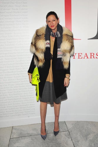 If you've recently been compelled to mix leopard with neon pink, or tweeds with glossy oranges, you can blame Jenna Lyons. Her vision over at J.Crew has us rethinking what's fair game when it comes to workwear, party-wear, or even weekend-wear, with sparkling sequins, cheeky prints, tailored denim, and bold color as ever-present themes in every situation. Our infatuation with Ms. Lyons knows no bounds, and we thought it time we paid a little homage to her signature elegant-with-a-twist style. So, click through to see how to channel Ms. Lyons—from those signature glasses to the perfect shade of lipstick, we've got the goods to help you roll with her crew.