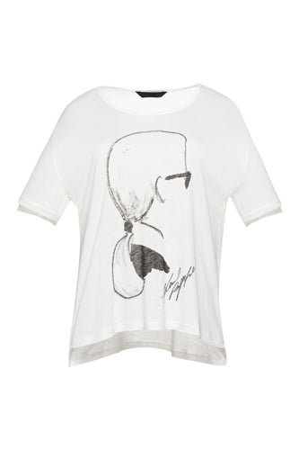 In addition to his coveted collections for Chanel, he also designs the lower-priced Karl Lagerfeld line featuring youthful, glamorous pieces in a Karl-approved palette of black, white, and silver — color is so passé, hmm? And while his Chanel designs bring to mind the elegant allure of Coco herself, the inspiration for his diffusion line is ... well, himself. High, ornamental collars and fingerless black leather gloves directly channel Karl’s brand of eccentric glamour. For the true Kaiser fan, there’s also a plethora of Karl merch featuring his ponytailed visage on T-shirts, tote bags, and even iPhone cases. Click through for our 10 favorite elegantly edgy pieces sure to earn you the Kaiser smirk of approval.