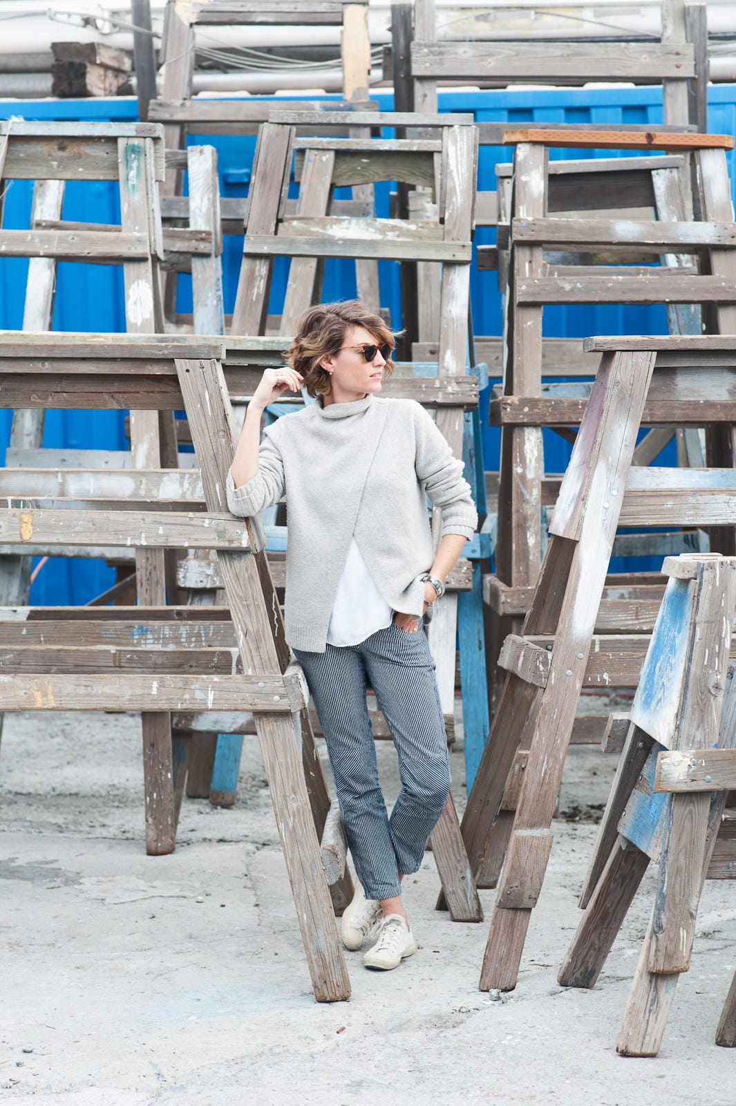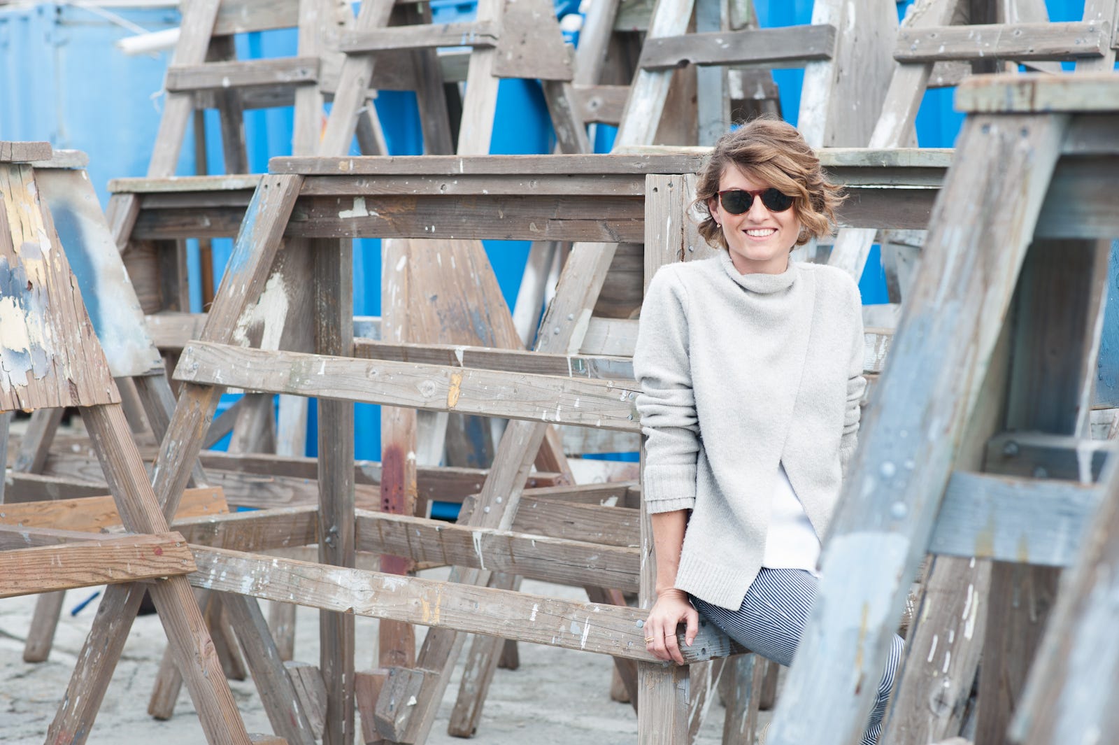 And, like a true artist, the understated aesthetic found in her work translates, well, seamlessly into her threads. We headed down to the docks to hang with the nautical-obsessed beaut, where she showed off some super inspiring, casual-chic styles. In the words of Blondie, "The tide is high!"
