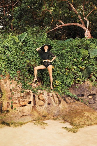 Miss Moss takes up serious real estate in the June/July issue of the magazine, as she appears center stage in a 20-page editorial, as well on the cover. Shot on location by Terry Richardson, the photos not only catch the 38-year-old looking ever the picture of perfection, but also capture the muse's playful side as she takes in the awe-inspiring island sights of Jamaica. The issue will be available May 29, but, ahead, we've got a peek at some of our favorite pics and the striking cover. For even more of the chic and sandy shots, click over to Harper's Bazaar.