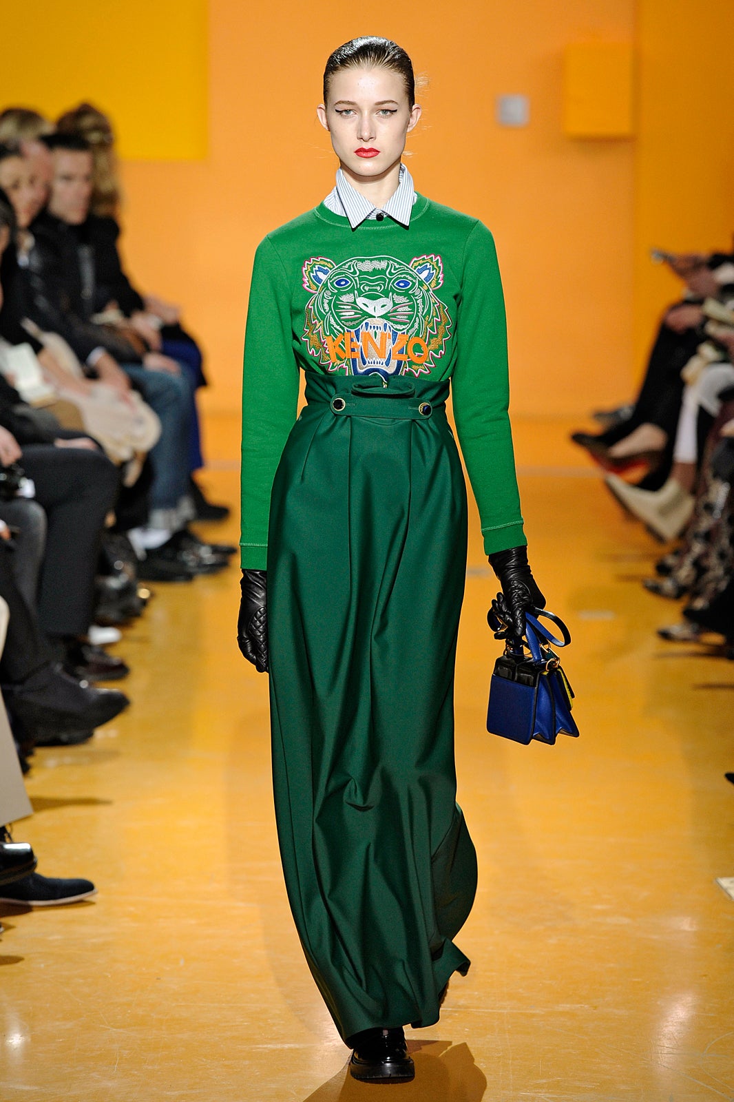 Ever since Humberto Leon and Carol Lim came to Kenzo as creative directors, the old-school label has been given a new-school kick in the rear. While staying true to Kenzo's tradition of graphic prints, punchy separates, and tongue-in-cheek references, the OC team took what they learned helming one of the hippest stores in the world to the heritage brand. With splashy logos, unexpected fabrics (yep, that's industrial carpeting you're seeing), and kitschy shapes (you know you recognize that boxy skirt suit from Opening Ceremony's racks), Kenzo's fall '12 collection is their most covetable to date. No longer just a rad label you look for in vintage shops, Kenzo is blazing forward as this generation's cool-kid label.