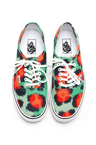 Fun fact: Did you know that Kenzo Takada's designs first sparked in the '70s at a Parisian boutique named Jungle Jap? Well, for their spring '13 runway parade, creative directors of the line (and co-owners of our beloved Opening Ceremony) Carol Lim and Humberto Leon tapped that trivia with a show full of wild prints worthy of one very chic excursion into the wild. And, just like the pair's last slam-dunk collab with Vans, these soles proudly echo the technicolor textiles spied on the catwalk.