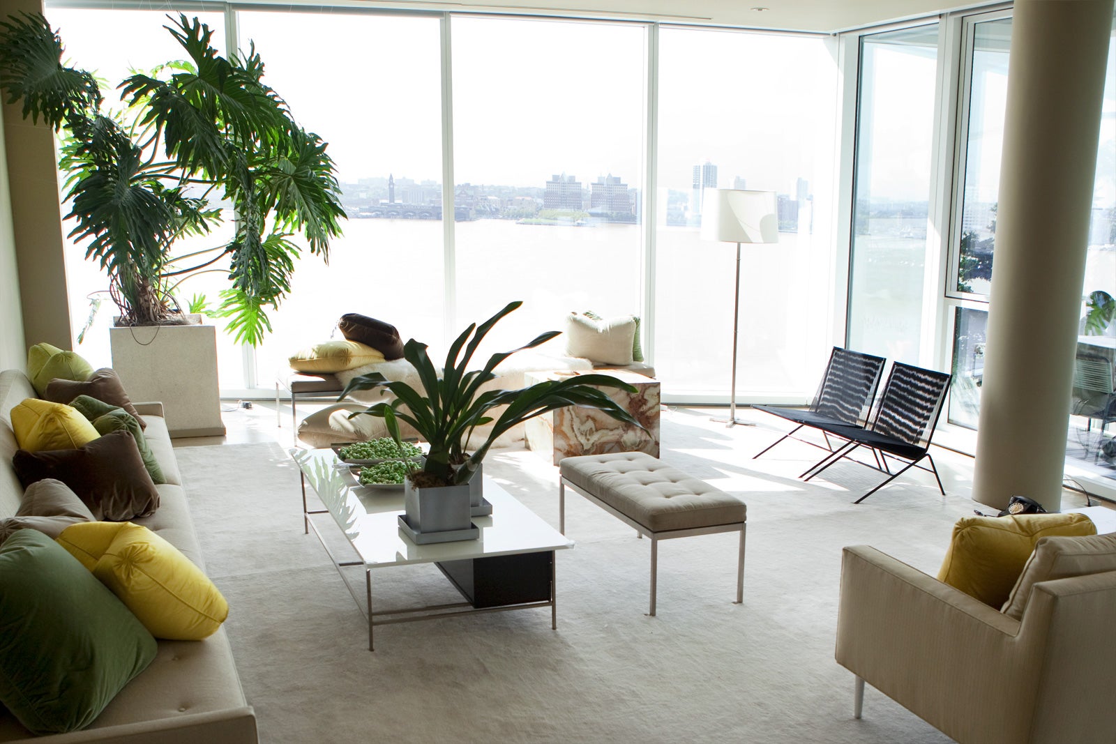 Our design philosophy has always been, "surround yourself with things you love." And it was working well until we looked around our apartments recently and realized we love a very…uh….eclectic mix of worldly home goods—placing our bedrooms' haphazard designs somewhere in-between hoarder and Moroccan bazaar. But, seeing as how we're going to be bundled up inside very soon, meeting Kevin Sharkey, Martha Stewart's right-whisk man (because we all know Ms. S. has whisks and glue-guns for hands), is making us realize simplifying our hibernation hide-out is the way to go. One space-saver? Sharkey's dining-room doubles as a ping-pong arena—trust us, it's flossy not fratty. We got a first-hand tour of Kev's 2,500-square-foot sleek, shiny, and spare stake in the Richard Meier towers on the Westside Highway—those views, that terrace, those closets—and we're ready to move in immediately, if not sooner! As Martha herself says, "It's a good thing."