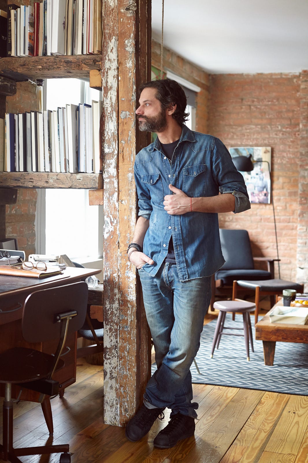 Luckily, Rosenberg let us into his rustic-yet-polished Noho pad to show us how to fuse his aesthetic — a mix of modern and traditional, bohemian and urban — into our own NYC-sized places. We got the scoop on how to re-do your space from top to bottom, what to buy for spring, and which artists to seek for your home collection. Best of all? If you're swooning over Laser's crib as hard as we are, you can shop his wares at his soon-to-launch site Gallacher & Rosenberg that stocks collaborative, original, and exclusive products. Or, you know, you can just be apartment peeping Toms, like us.