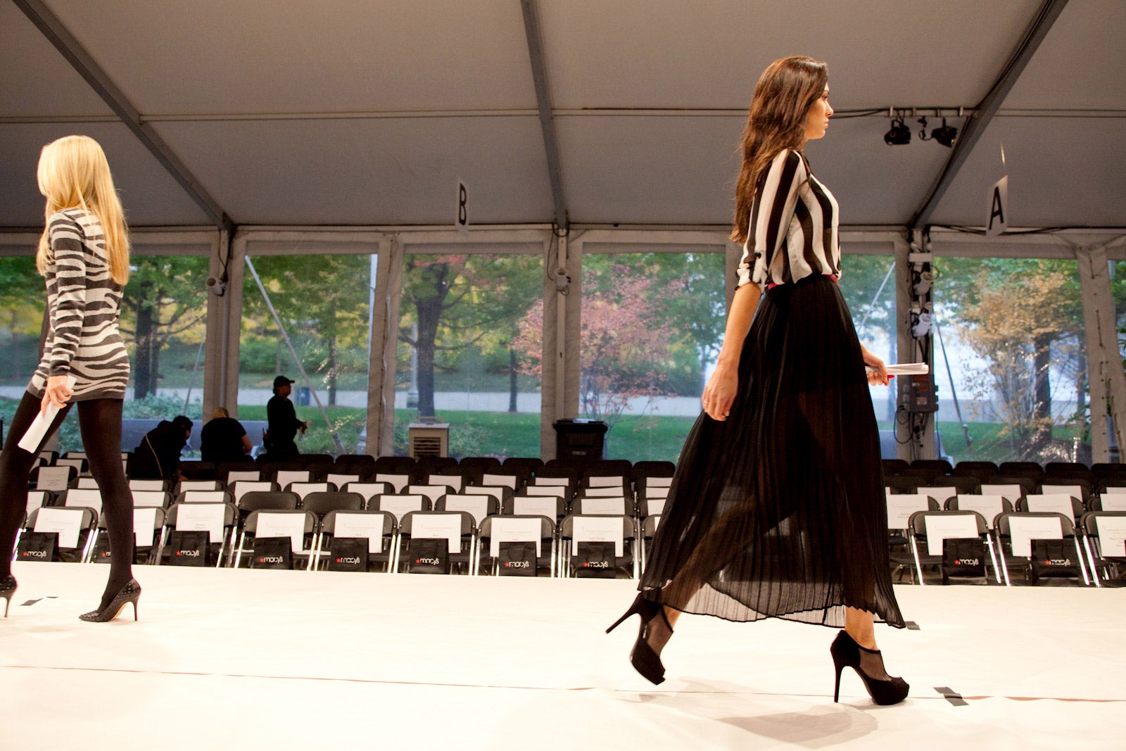 We tapped Ford model Noelle Lynch to bring us in tow during the hours leading up to a high-energy runway show in Millennium Park (the official kickoff to Fashion Focus Chicago) and go way behind the scenes. From walk-throughs down the catwalk to a three-hour hair-and-makeup session, we stuck by this doe-eyed knockout's side to learn all the tricks of the trade. Don't worry: In the midst of the backstage chaos, we managed to get Lynch to dish on how she stays in such great shape, the business side of the industry, and most importantly, her post-show plans. Put your curiosity to rest and follow our day-in-the-life of this beauty. Warning: It's not as easy as it looks.