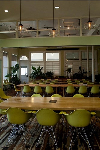 Do you remember LimeWire? We may—those Coldplay songs had to come from somewhere. Unfortunately the free music sharing site shuttered due to legal problems in December, but during their heyday, the company had a stunning Social Network-worthy office in the heart of Soho. The space is going the way of the site, resulting in a tag sale that has interior decorators salivating. Today the Wall Street Journal unearthed a Tumblr, SoHo For Sale, that's selling off Limewire's design-y furniture at prices—for the quality of goods on offer—that are seriously reasonable. Look for Eames chairs, a Coleman desk, and rolling tables that will make for one powerful pad.