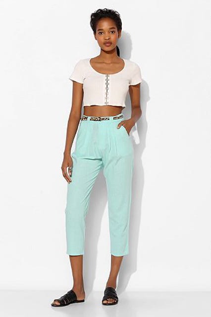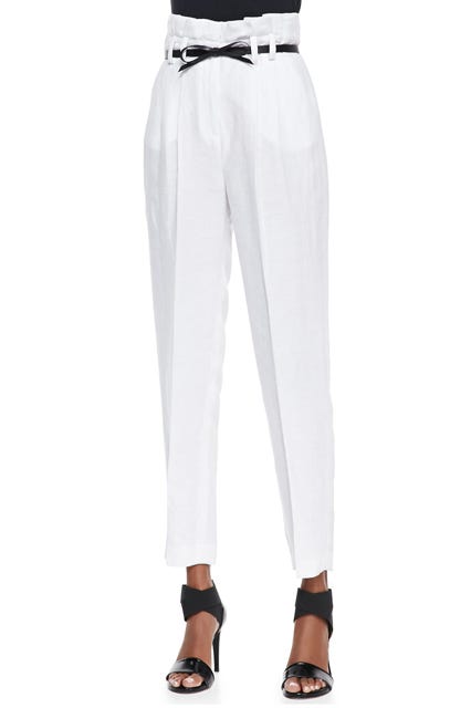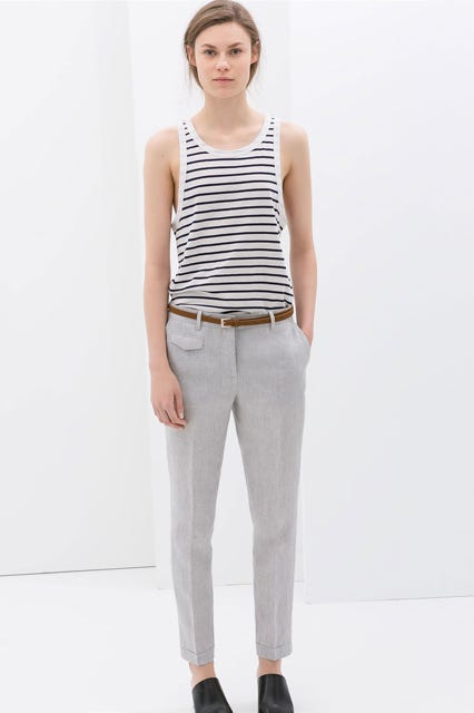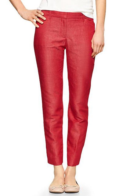 So, you better believe we'll be buttoning up breathable linen pants that will keep us cool in every sense of the word. Up ahead: cropped, poppy-hued, and high-waisted versions of breezy trousers to wear now through September. Looking good this season? No sweat.