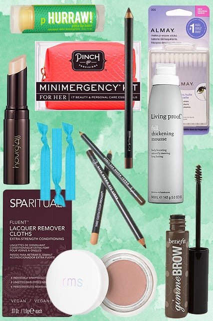 So, we decided to turn that curiosity on each other. After all, each of us in the beauty department has a very different philosophy about what products one needs to get through the day. And, likewise, we all have very different strategies for makeup-bag packing, from a simple three-lipstick situation to a pouch full of everything one could ever need.