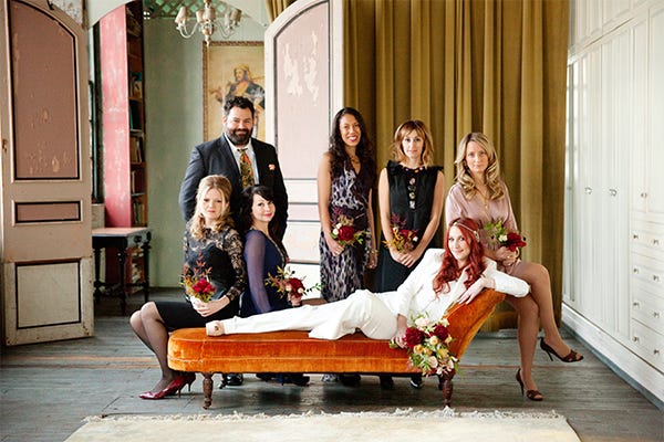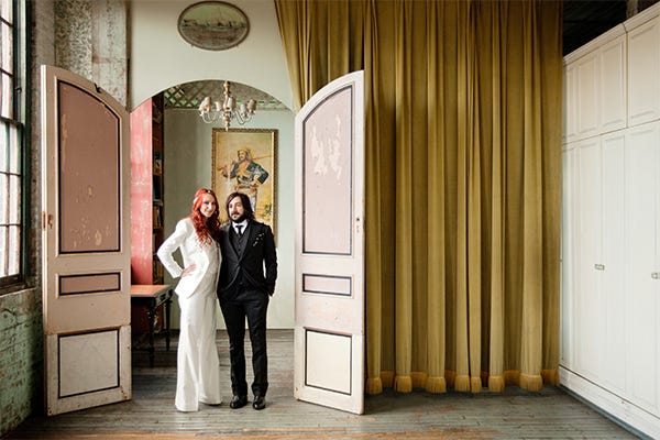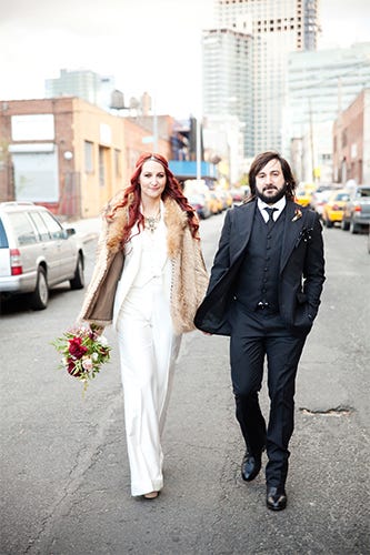 Hayley Kaufman met Gregg Rudner and knew right away they would be together. The timing wasn't right, and they were living on different coasts, but years later he serendipitously found her on Facebook and they began talking every day. When she moved to New York they went on their first date her second night in town. After five years of dating, on November 3, 2012, the Brooklyn-based duo tied the knot just a borough away, in Queens. The soiree was a night of rock 'n' roll romance with a bohemian and vintage-minded spirit.
