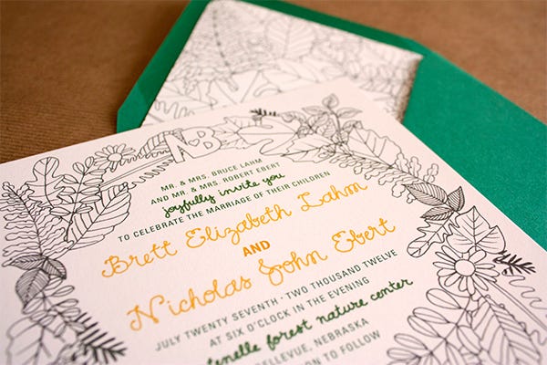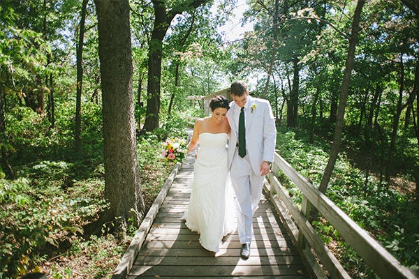 For college sweethearts Brett and Nick, tying the knot in the middle of an enchanted forest was far more fitting than saying "I do" indoors. Once they decided on the date of July 27, 2013 in Nebraska's Fontenelle Forest, the crafty duo began dreaming up a rustic wedding that would reflect their relaxed style. The result? A memorable day full of DIY details that celebrated both the venue’s natural beauty and the happy couple.
