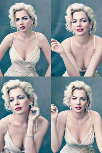 We’ve already shown you the first official pics of Michelle Williams as the iconic platinum-blonde bombshell Marilyn Monroe, but now you can feast your eyes on an entire Annie Leibovitz-shot portfolio from October’s issue of Vogue. Inspired by the upcoming film My Week With Marilyn, we think Leibovitz and fashion editor Tonne Goodman got the look just right—they not only re-imagined some of Marilyn's most iconic images, but the creative team behind the magazine shots also played up Michelle Williams' inherent sex appeal-meets-vulnerability that allows her to embody the screen star so completely. The photos are stunning, so make sure you check them all out here before you pop on over to Vogue.com to read the article before it hits your local newsstand.