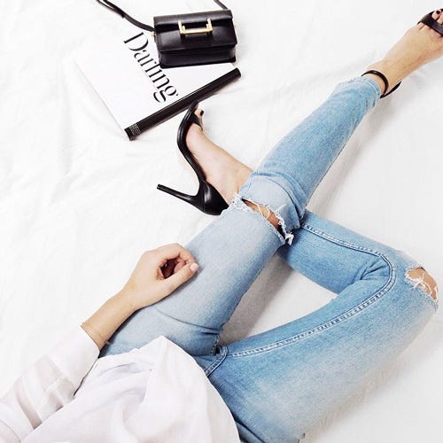 Every now and then, we fall prey to fashion ruts, wearing the same pieces over and over again until we can barely stand to look at them. (Thank god for the change of season, right?) This type of style fatigue doesn't affect everyone, though. Take Munich-based art director/blogger/long-boarder Mija Flatau — girl can't get enough of her denim. A quick troll through her Instagram account, @mija_mija, shows nary a snap without some form of jean in the frame, and that's just the way Flatau and her 200,000-plus followers like it.