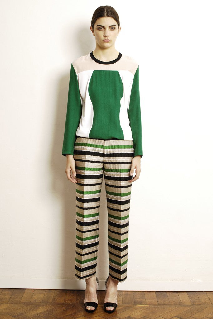 Whenever we get a chance to talk about how awesome MSGM is, we take it, and we don't like to think about just how many times the brand's fall '12 collection has made it onto our site (a lot, to be specific). So, it's with great glee that we're presenting their resort '13 collection, a more subdued lineup that's a little short on the whimsy that charmed us so much in past collections, but is still super-cool. We love the exaggerated shapes like the cocoon jacket and palazzo pants, as well as the kooky/nerdy pairings like the checkered shirts with acid-colored lace and a vinyl-trimmed tweed jacket. But is it just us or did anyone else hanker for just a little more in the form of ridiculous florals, pouffy skirts, and creative layering? Click through and let us know your thoughts!