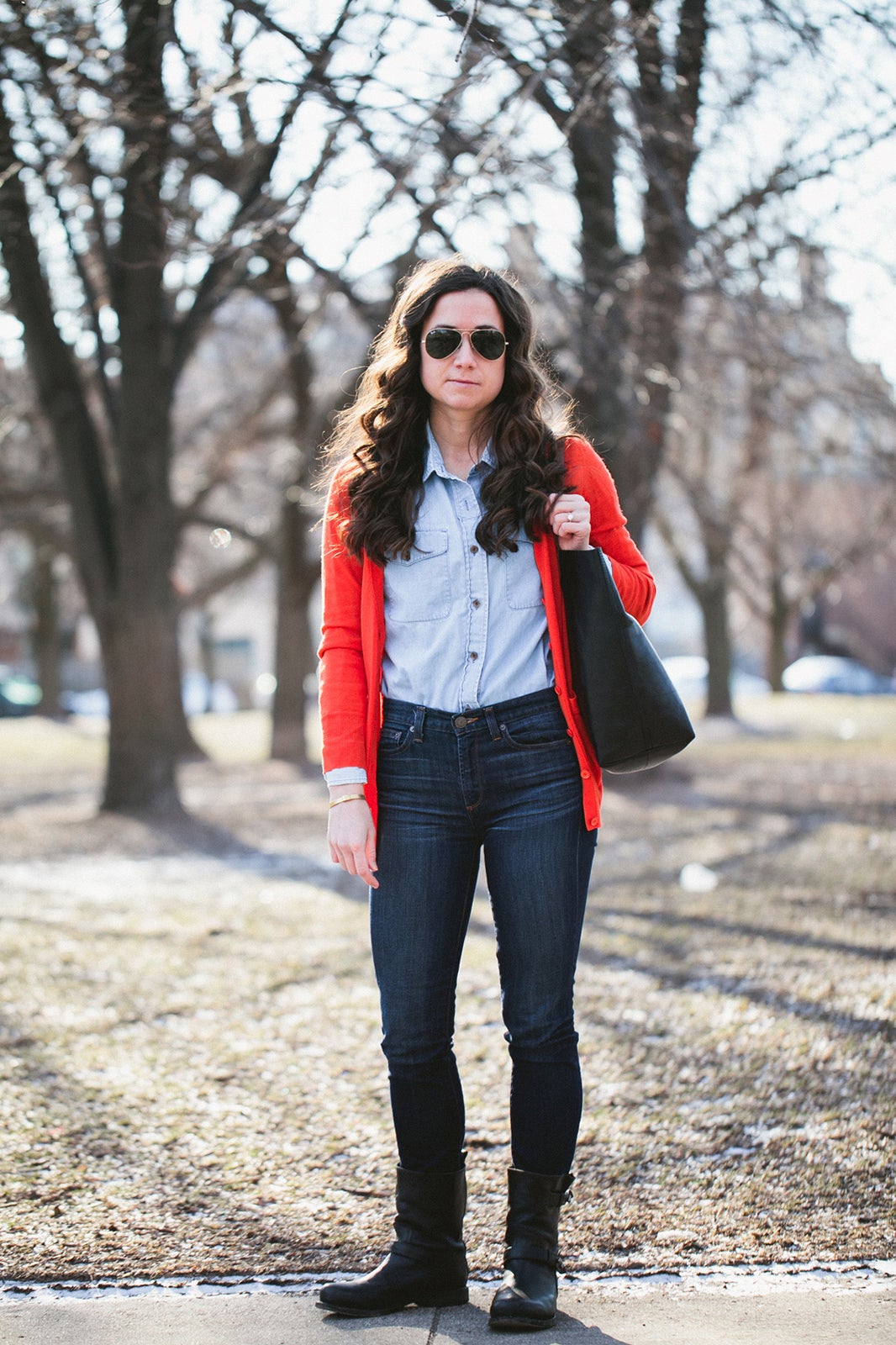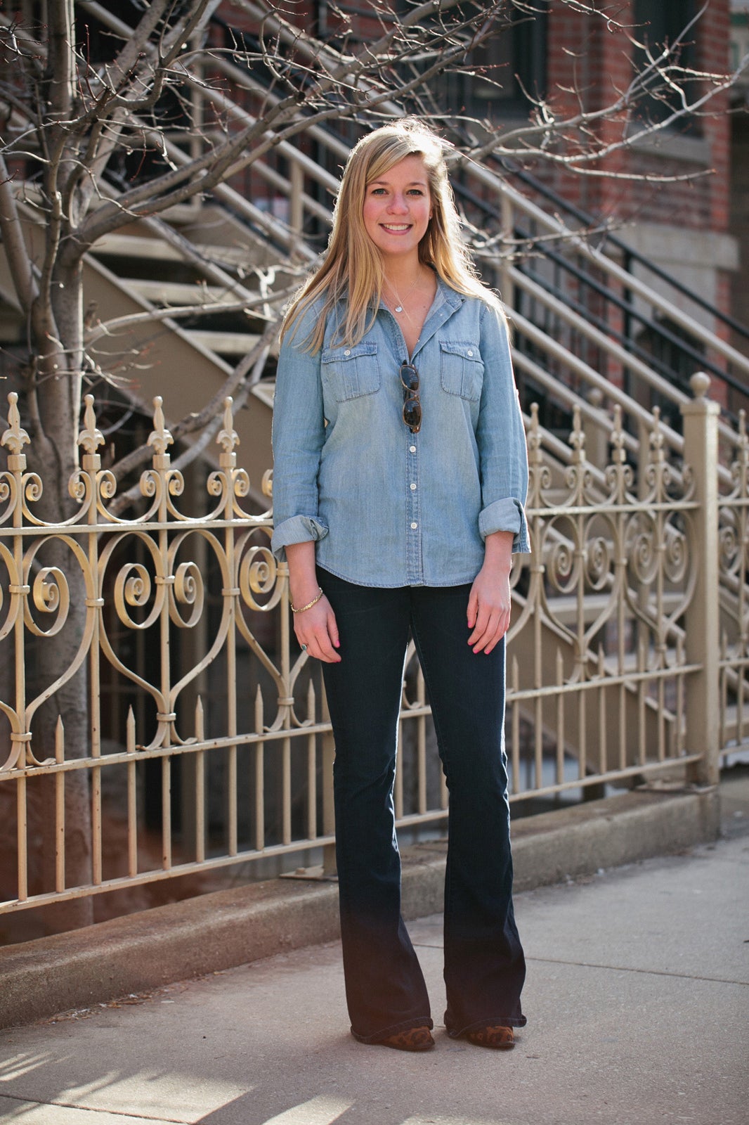 On a typical day, you can see mine paired with a pencil skirt for my morning meetings at Uncommon Ground, topped with a linen blazer for lunch at Sunda, and then worn casually with printed denim for an afternoon styling sesh. It's all in a day's work, and that one piece helps me stay on point with my schedule and my outfits ā and I'm not the only one. See how style-savvy Chicagoans are wearing their chambray shirts ā it may inspire you to reach for your own denim top.
