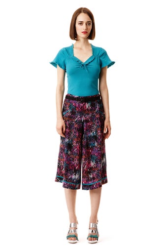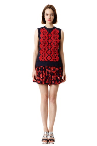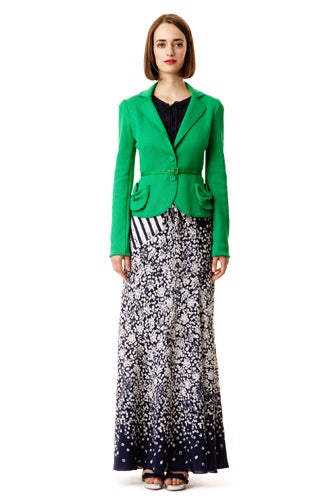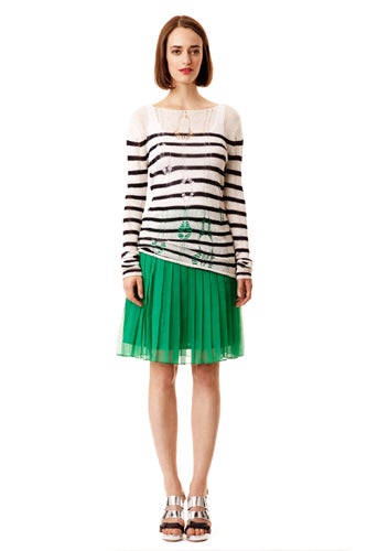 Though we would expect nothing less from the notoriously flirty, feminine designer, we're mostly drawn in by unexpected combinations of flouncy frocks, structured jackets, and hot-hued peacoats in shades of bright green, red, and blue. Combined with unique pieces — such as multi-colored tailored shorts mixed with a preppy orange top or french sailor stripes with accordion-pleated skirts — Nanette Lepore's latest lookbook has given us a reason to break away from our comfortable color palette and dote on a new kind of ladylike look, one with unapologetic brights that shake us out of our rut.