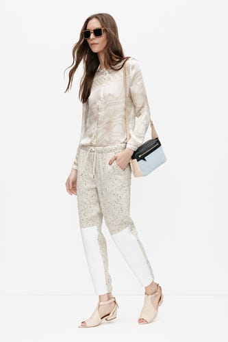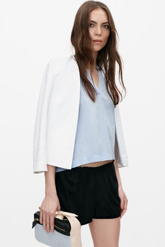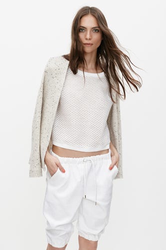 Sandra Sandor, designer for the Budapest-based label Nanushka, says she makes clothes for the "urban nomad." And, sure enough, we definitely spy a freewheeling, carefree vibe to the brand's spring '14 collection. But, playful pieces like sherbet-striped shirts, piped athletic shorts, and denim rompers are balanced nicely by grown-up silhouettes and luxe fabrics: The brand specializes in elegantly unstructured dresses, easy silk jumpsuits, and satisfyingly chunky knits.